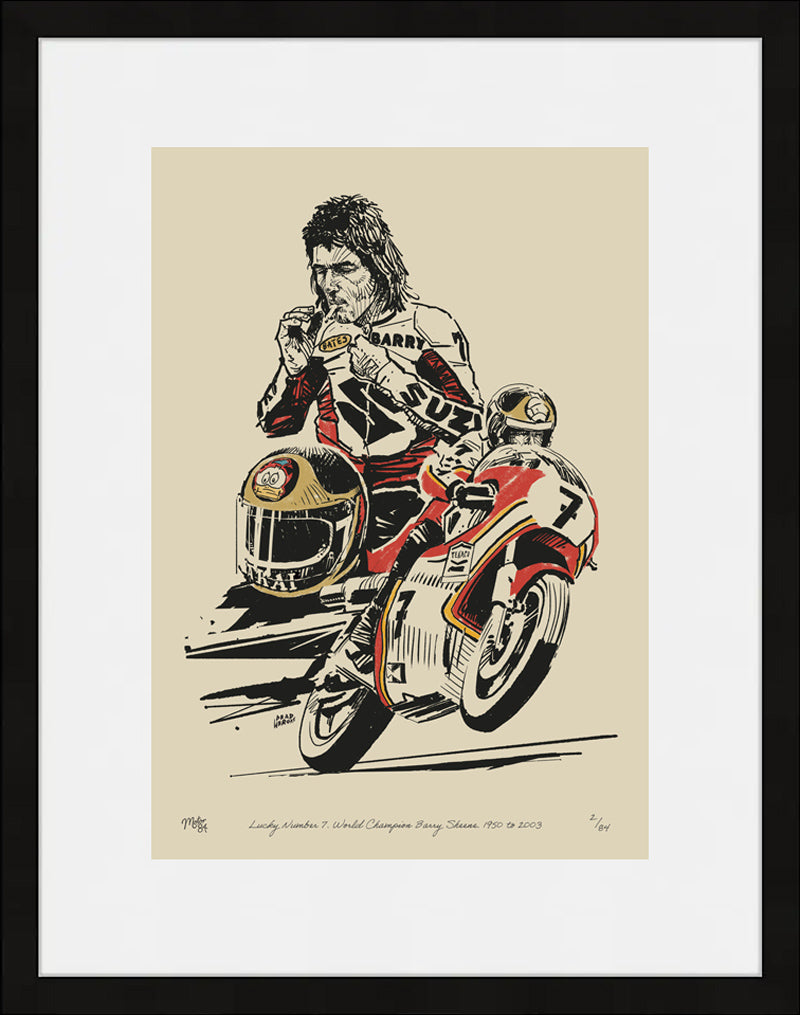 Barry Sheene raced from 1971 to 1984, winning the 500cc World Championships in 1976 and 1977 riding for Suzuki. In 1975 Sheene had a major accident in the US. He suffered severe injuries including; a broken left femur, right arm, collarbone and two ribs. 7 weeks later he was sat in pole position at the 175 Dutch TT.